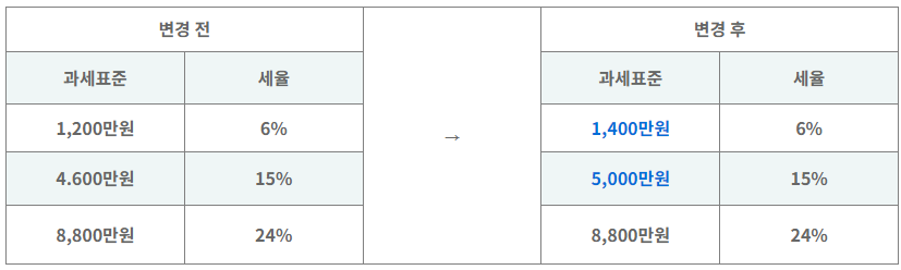 일부 과세 표준 구간 변경 조정되었습니다.